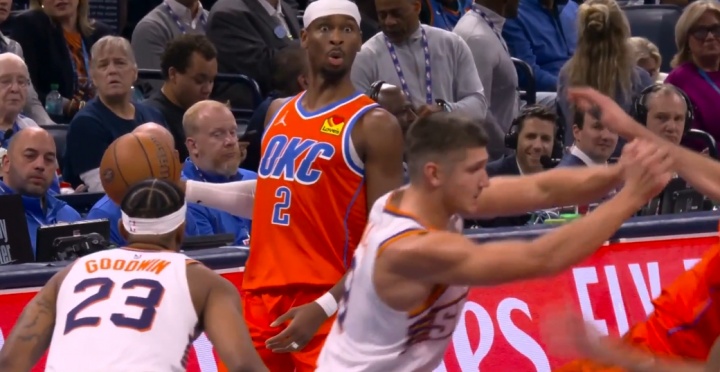 在比赛中,格雷森·阿伦恶意犯规霍姆格伦被驱逐,亚历山大在旁边直接看呆了。
