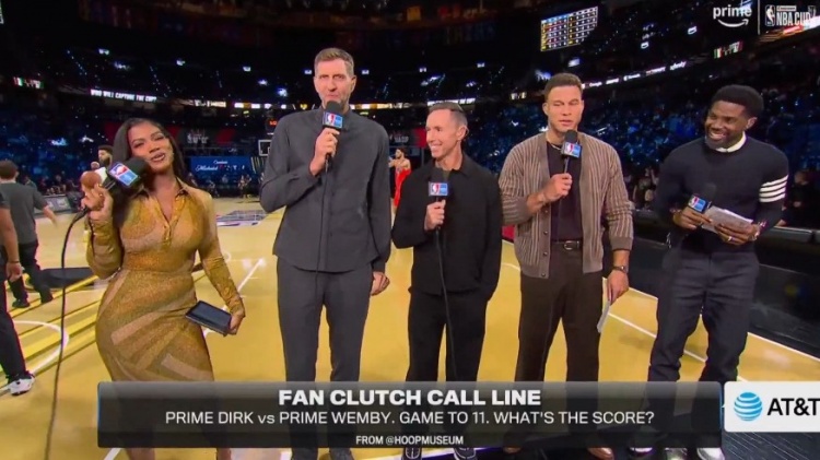 12月14日讯 今天,解说嘉宾诺维茨基被问及若自己和文班亚马一对一谁能赢。