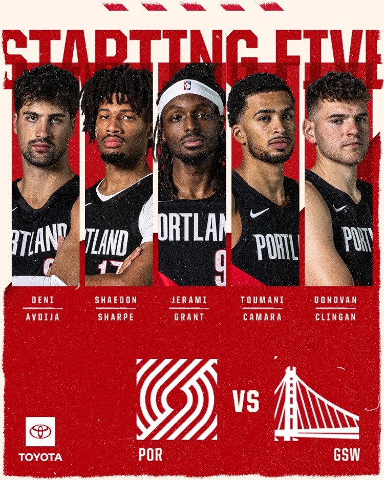 赛前开拓者公布了本场首发阵容:阿夫迪亚、夏普、格兰特、卡马拉、克林根。