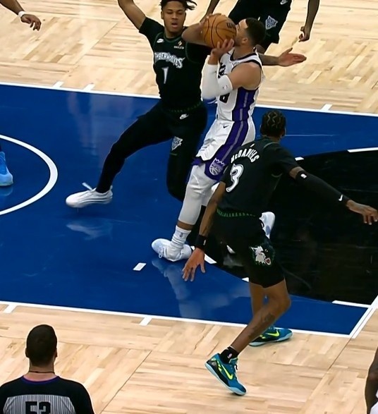比赛进行到第三节,国王宣布拉文因左脚踝伤势退出本场比赛,离场前拉文8投4中,三分4中1,罚球1中1得到了10分1篮板1助攻。