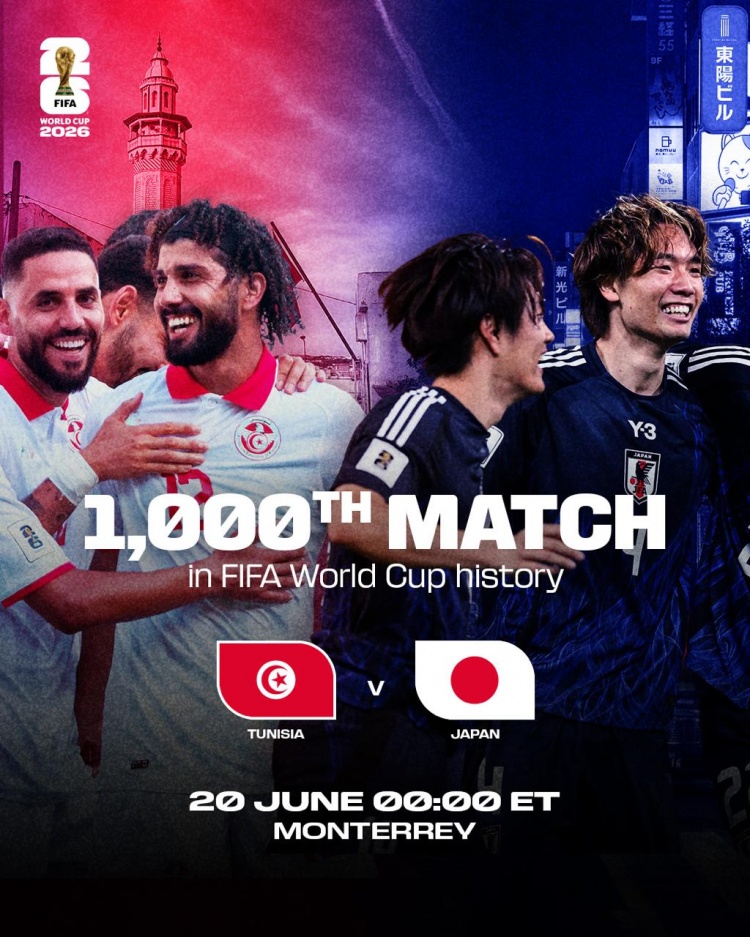 国际足联官方社媒晒出海报,确认此役将是世界杯历史上第1000场比赛。